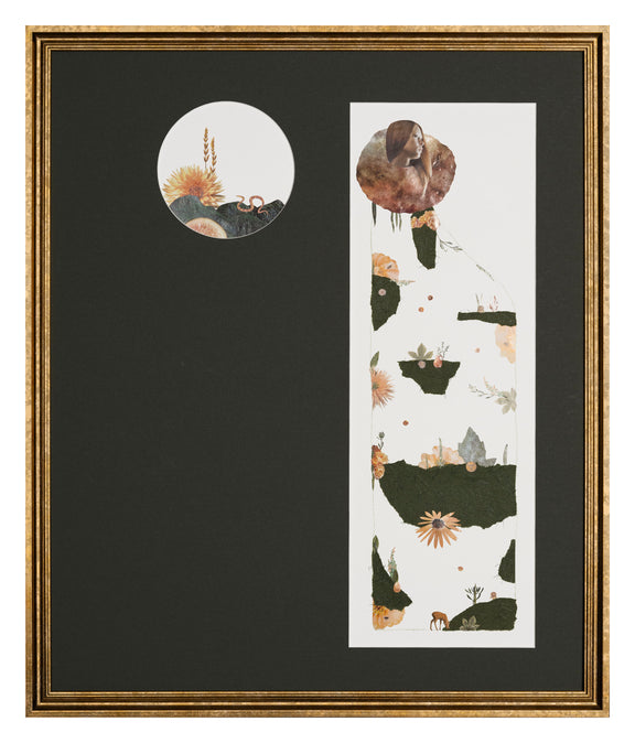 Hand-cut found images, coloured pencil and glue on watercolour paper