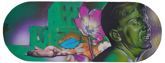 Spray paint and acrylic on board